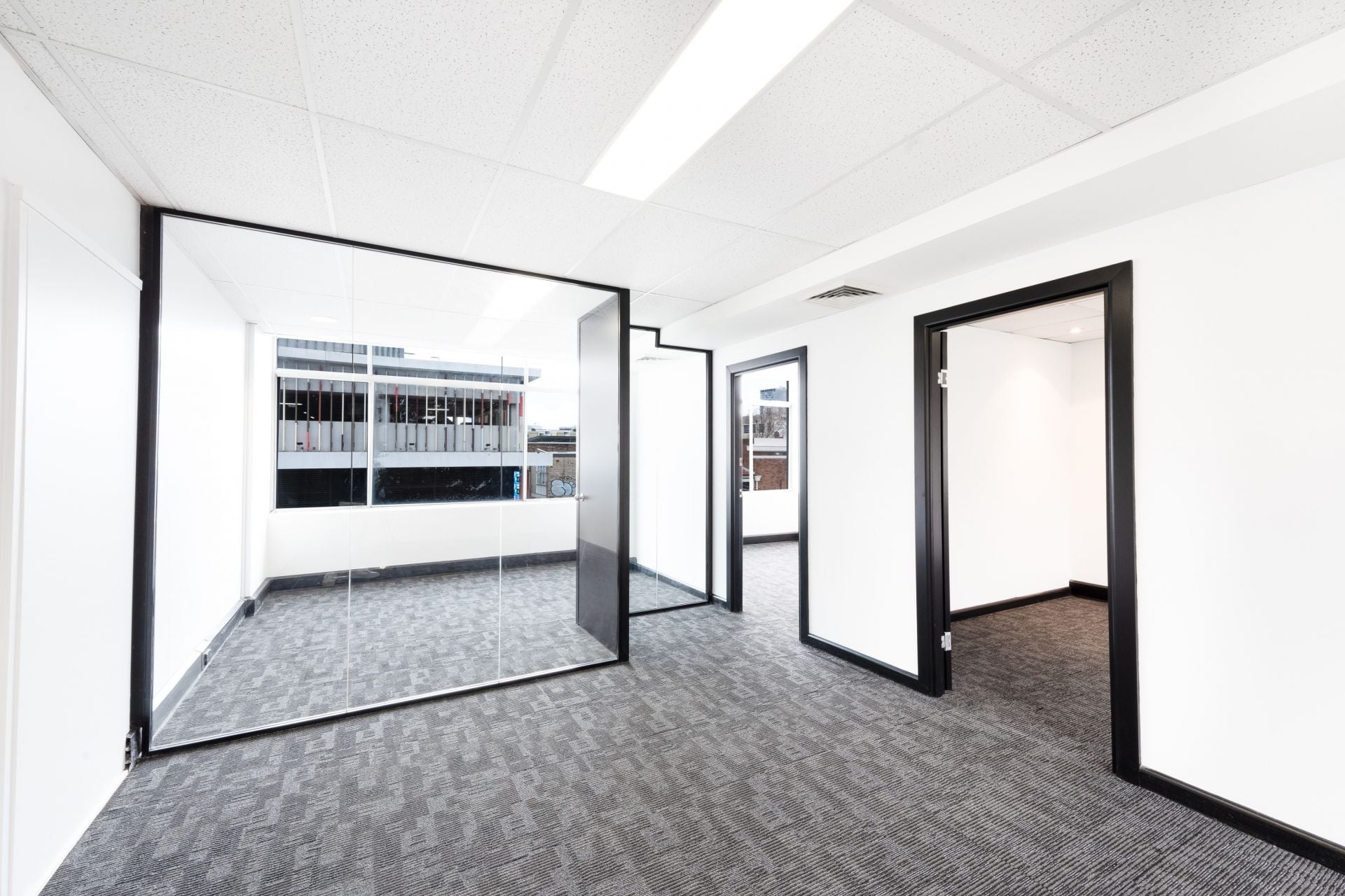 Suite 2.03 – 63 sqm – Existing fitout which features two office/meeting rooms, and open plan area.