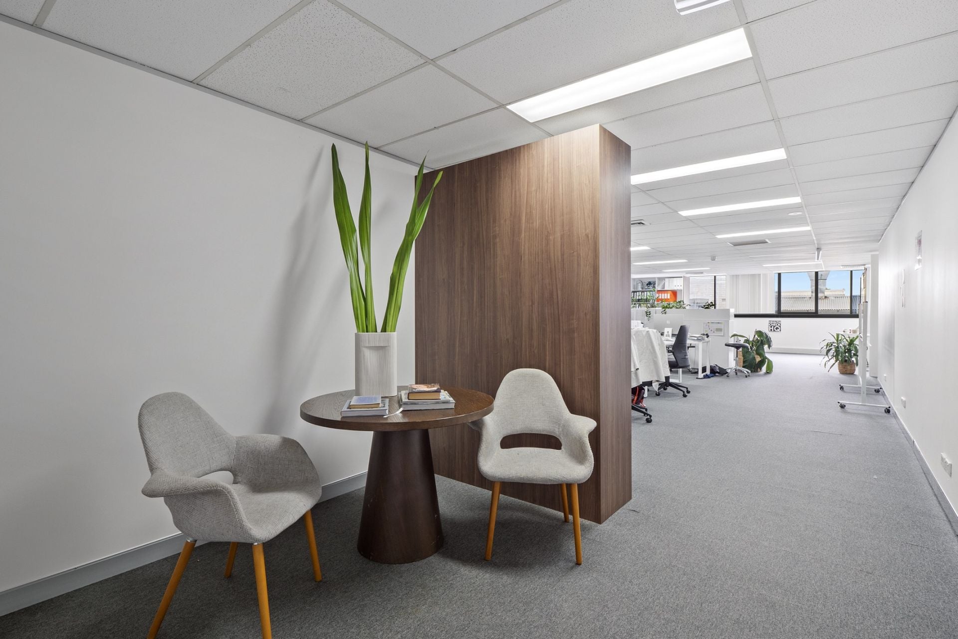 Suite 2.02 – 129 sqm – Efficient suite with existing fitout featuring 1 boardroom, 1 workstations, storage and a waiting area.