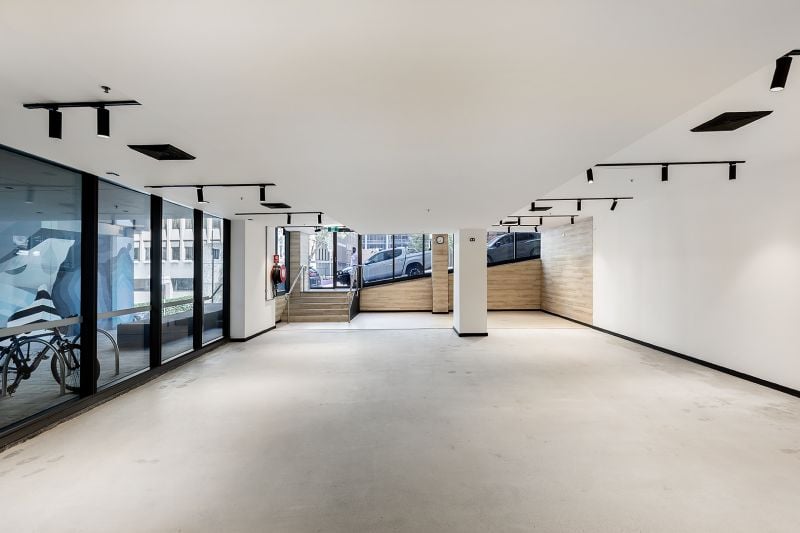 • Modern Design: Floor-to-ceiling glazing floods the space with natural light, complemented by high ceilings and quality finishes.